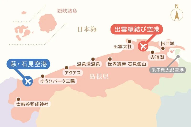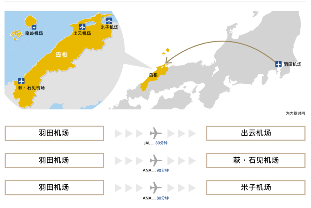 島根縣不大,卻有著萩·石見、出雲及隱岐三個機場,分別有來往東京、大阪等航線,如果是國內朋友,建議直飛大阪,再轉JR抵達;