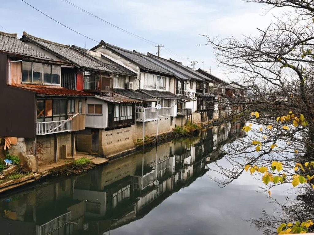 走在老街上,縱深悠長的切妻造(雙坡屋頂)民居與白牆土藏一家挨著一家,隨處可見的“左桟瓦”、“海膽牆”、“格子窗”……等日本傳統建築元素依舊是舊時的模樣。