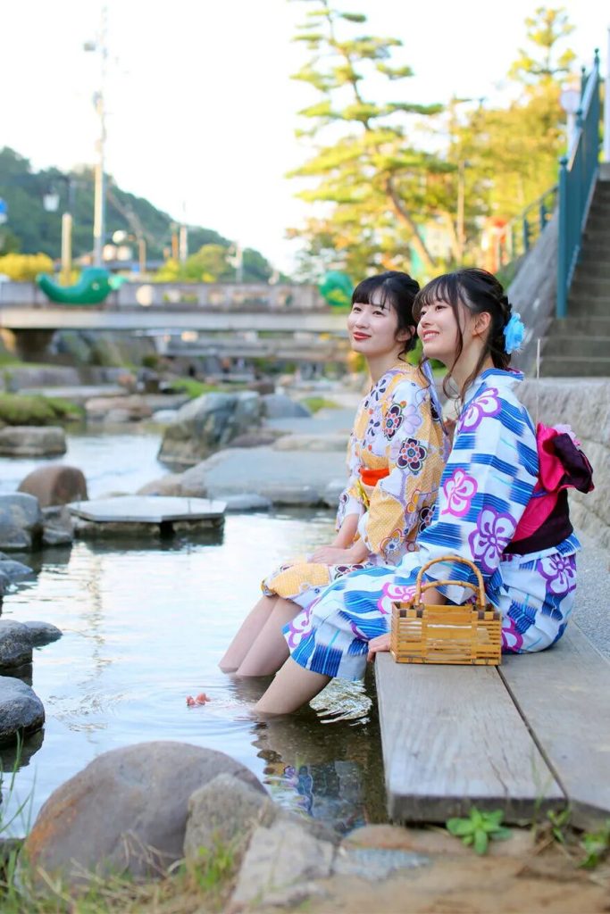 除了泡湯,溫泉街上遍布著特色小吃店與手工藝品小店也超級好逛,傍著玉湯川畔,身著浴衣,漫步於石板路上,隨手一拍都是滿滿的日式風情。