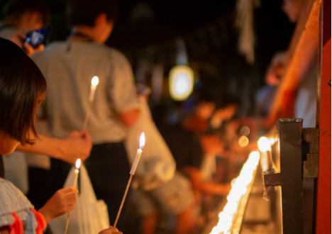 將腳浸泡在神社境內禦手洗池的泉水中,點亮祈禱的燈,祈求無病無災。
