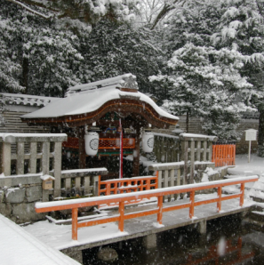 神社內靜謐的雪景,和京都街區的景色完全不同,美得讓人無法想象。