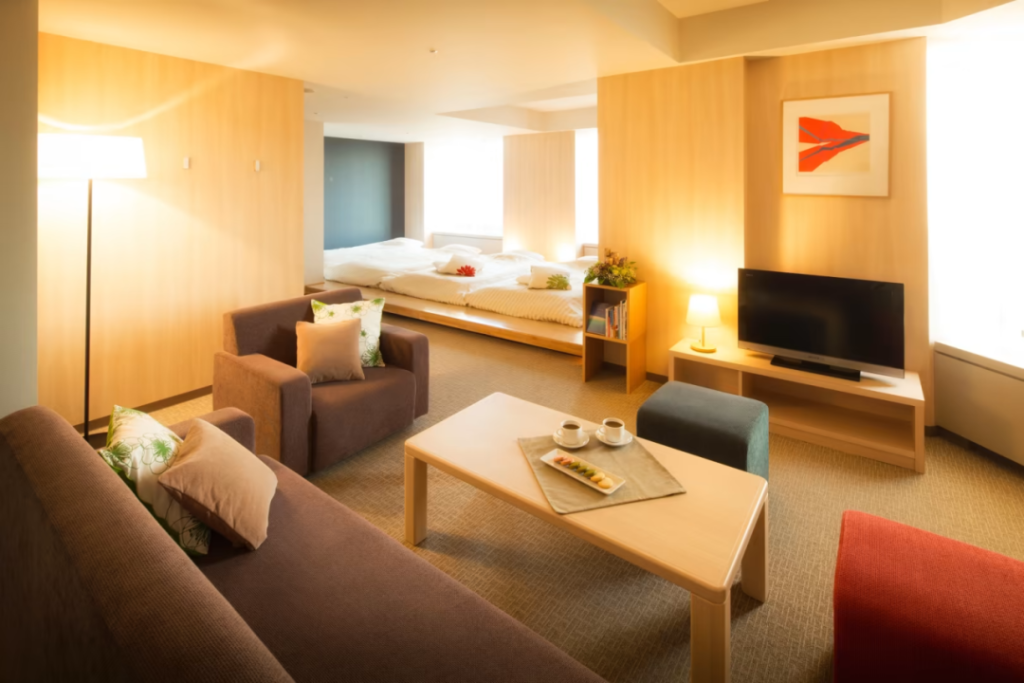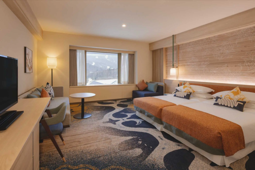 度假村擁有Hidaka和Yubari兩座具有精致現代自然設計風格的大樓,共341間客房。多種房型,有高級雙人房、高級三人房、高級4人房、高級山景房、豪華山景房、家庭套房等多種房型。