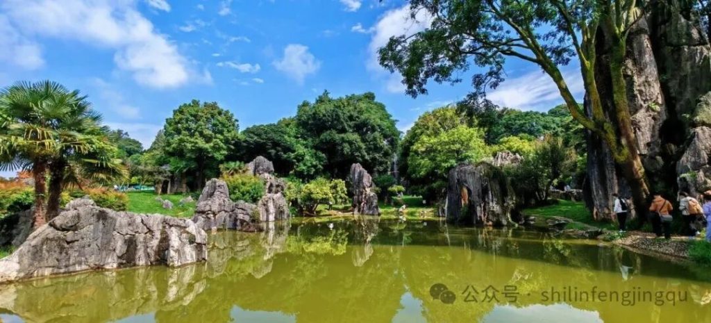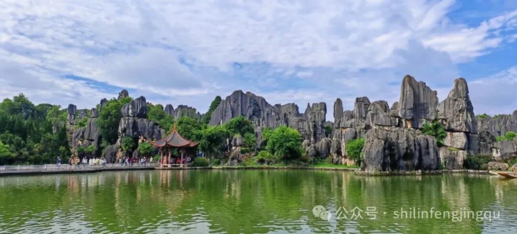 從景區大門進入後,最先映入眼簾的美景就是石林湖。湖水清澈,倒映著周圍的石峰,形成“水上石林,波光奇峰”的獨特景致,湖邊步道平緩,可漫步欣賞湖光石影交織的美景。