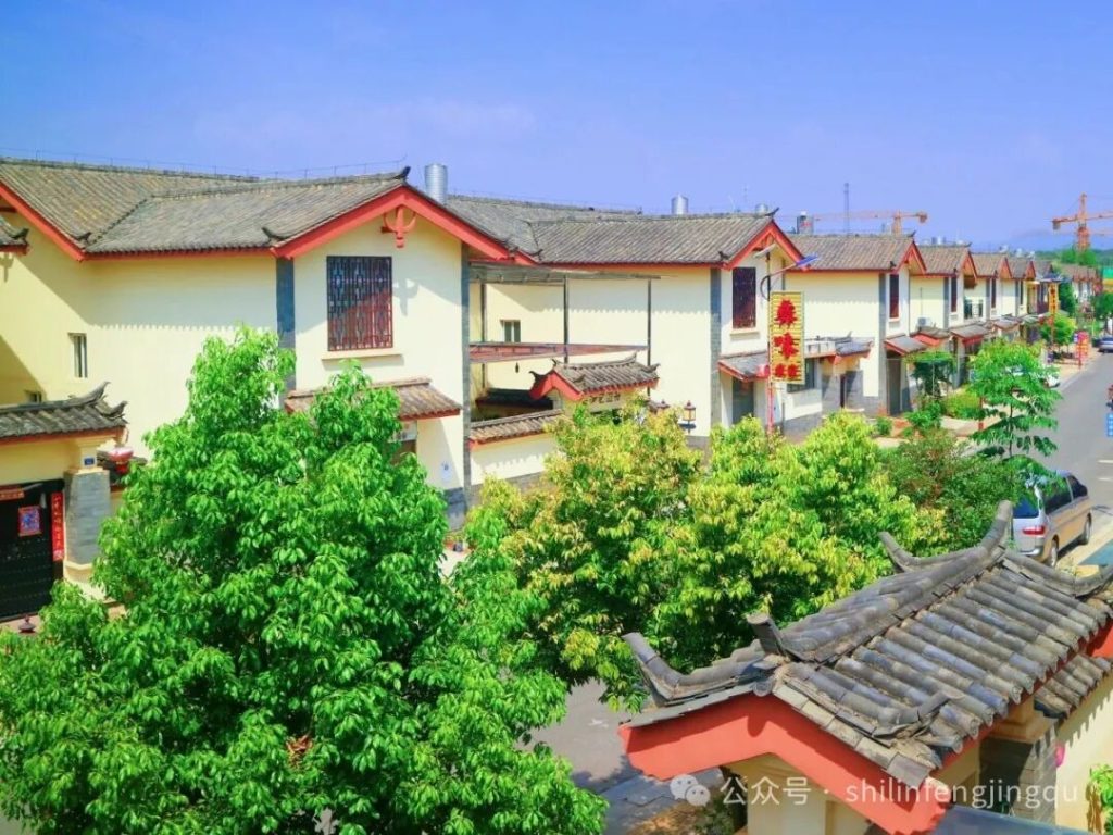 彝鄉網紅村五棵樹村位於石林中路,環境優美,風情獨特,距石林風景區1公裏,距石林縣城9公裏。村口是充滿彝鄉風情的溫泉度假村——水上石林,村中有多家風格各異的民宿客棧可供留宿,有彙集石林彩玉和撒尼剌繡的商業街,有特色美食餐館。