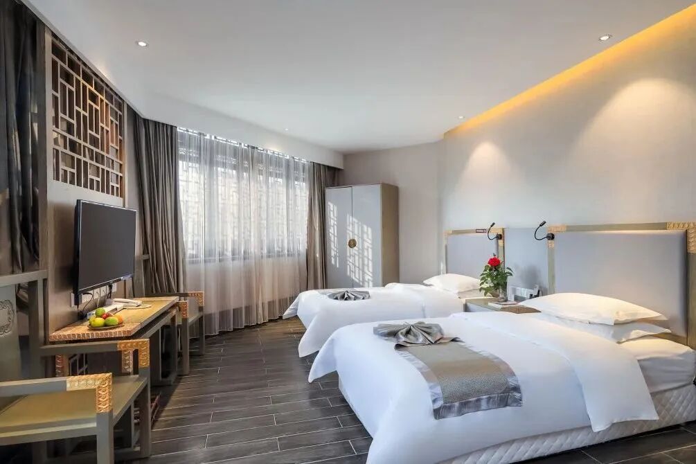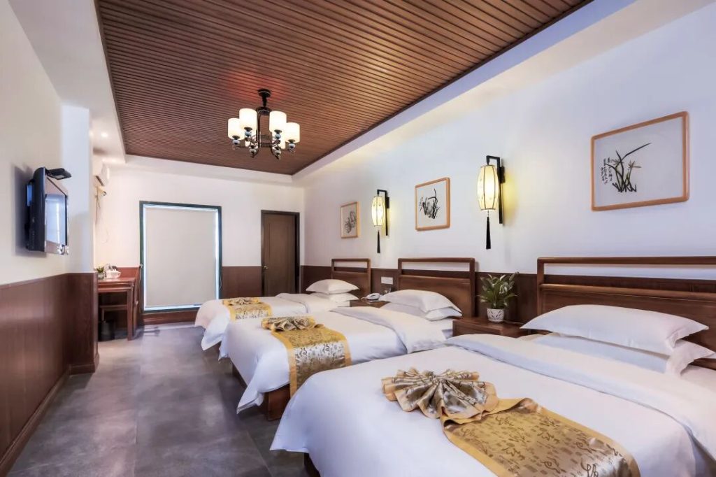 蘭花客棧則將徽州風骨寫入骨髓,馬頭牆切割著湛藍天幕,廳堂裏的蘭花幽香與遠處複興廣場的皮影戲鑼鼓聲,織就古今交響的夜曲。