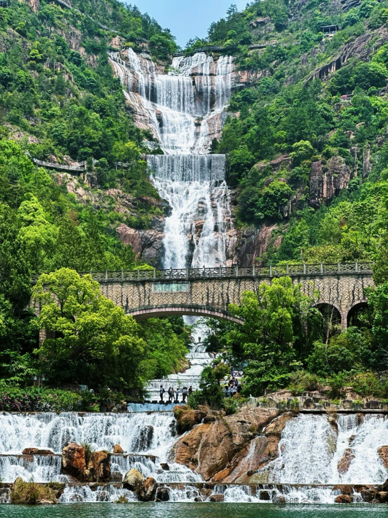 這是李連傑成名作《少林寺》的取景地,濟公也曾在此悟道。7米的天然花崗岩天生橋之上,瀑布穿梁傾瀉而下,最窄處僅20厘米,不得不感歎大自然的鬼斧神工。