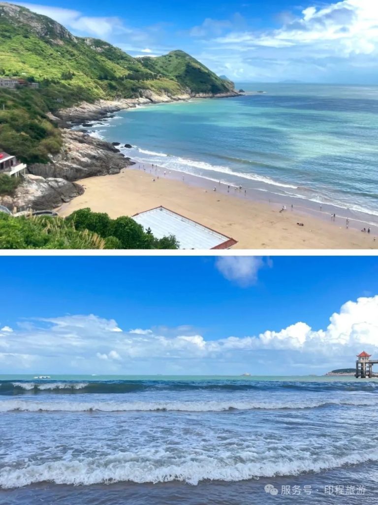 作為溫嶺最大的沙灘,洞下沙灘長600餘米,寬70餘米,沙質純淨細軟。半山腰的特色民宿群是不錯的休憩地,白天踏浪嬉戲,夜晚聽濤入眠,還能品嘗新鮮海味。