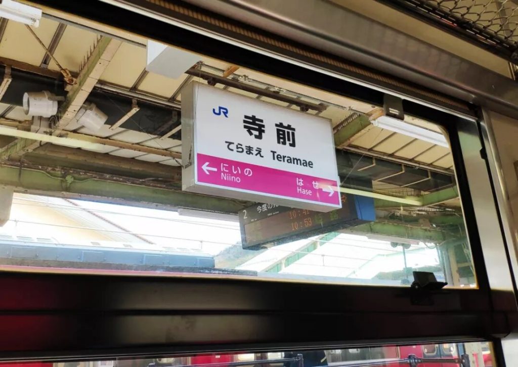 換乘JR播但線(寺前方向各停),11站大概50分鍾的時間,在寺前站進行第二次換乘。