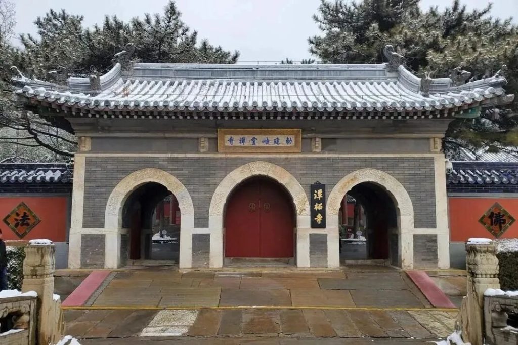潭柘寺山門山門為三間無梁殿式歇山頂建築,筒瓦屋面,簷下為清康熙皇帝親書石額“敕建岫雲禪寺”。