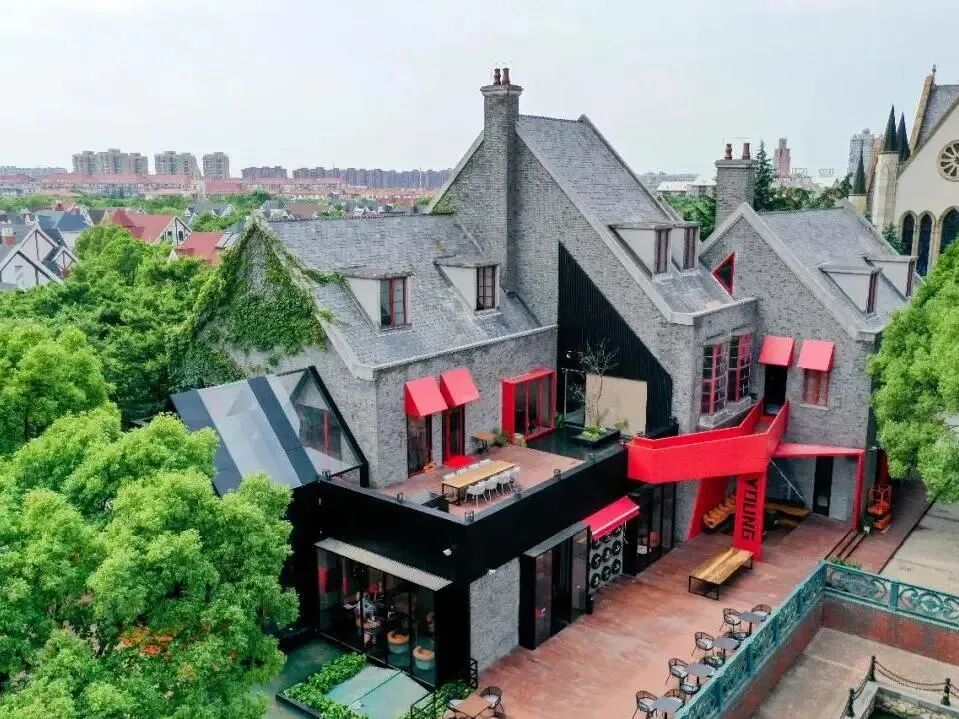 YOUNG美術館,泰晤士小鎮重磅藝術地標,黑、白、紅為其主色調,它是追求人與自然和諧共處的最佳理想之境,具有時尚感、現代化、國際性、生態型的特色,被評為"最美的滬上英倫風美術館"。