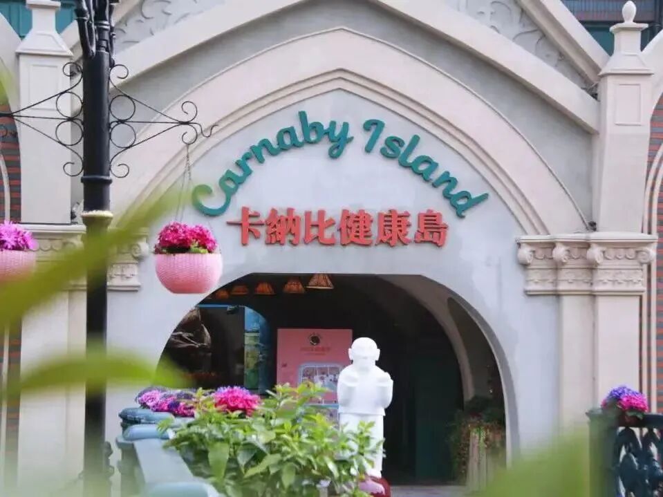卡納比健康島,由一簇地道的四面環水的英倫海港風格建築群所組成,利用泰晤士小鎮生活化的歐式生活場景,讓國人不走出國門也能了解世界。