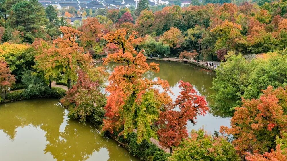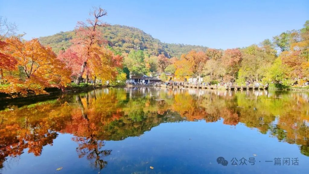 然後漫步十景塘,欣賞湖邊的楓葉倒影,再依次遊覽白雲池、睡蓮池、放生池周邊的楓樹。