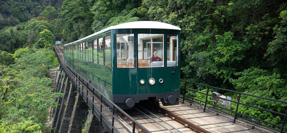 而最新第六代山頂纜車的車身特別塗上具標志性獨特“山頂纜車綠色”,經過精心改良,除了配備更寬闊的車門、無梯級設計,方便殘 疾人士上車,更設有偌大的全景玻璃窗讓乘客飽覽香港天際線!