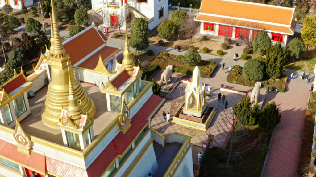 從山門進入,先拐去止語茶社,竹簾半掩,木桌擺著粗陶茶杯,自助茶水免費續,喝口茶歇腳時,看陽光穿過窗欞落在院落裏,隨手拍都是禪意;接著往裏走,在這裏你能看到泰國、緬甸、印度風格的寺廟與中國古寺相互交融,佛煙嫋嫋,梵音不絕;最後去齊雲塔下拍張合影,傍晚夕陽斜照時,古塔、光影、香火氣,能把“千年古刹”的氛圍感拉滿。