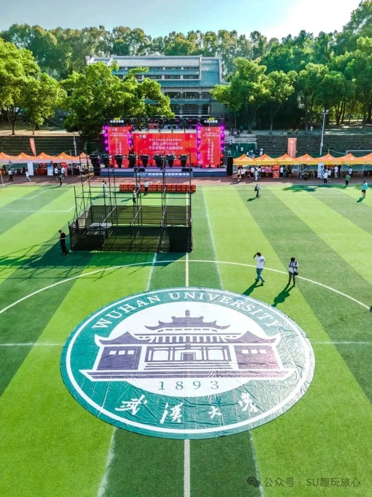 坐擁珞珈山,環繞東湖水,被譽為中國最美校園之一,校園內中西合璧的宮殿式建築群古樸典雅,與自然山水相得益彰。