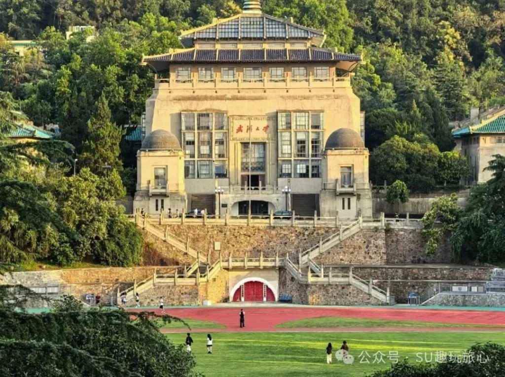武大最具故事感的地標,建於1931年的它,是中國最早的現代大學宿舍之一,紅牆碧瓦與青石板路交織出中西合璧的典雅,因每層齋舍以《千字文》命名,又被稱為"千字文齋",連台階都藏著"百步梯"的複古儀式感