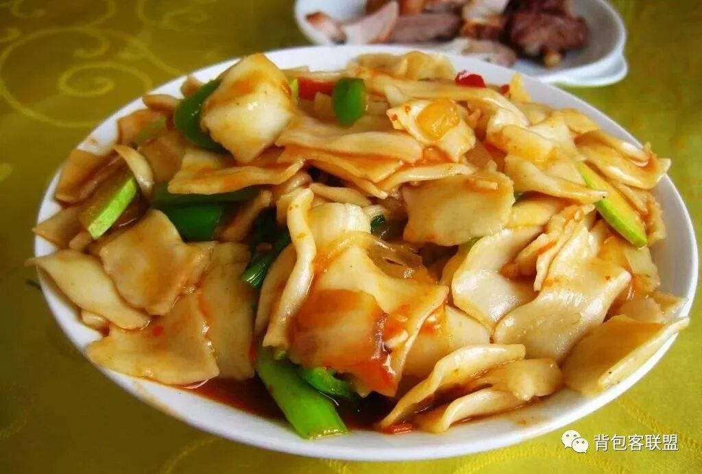 尕面片是青海人面食中最普遍且獨具特色的家常飯。“尕面片”的制作方法很簡單,將冷水和好的面,捏扁拉成長條後,再揪成如“指甲蓋”大小的面片,入鍋稱“指甲面片”;揪的面片比較大者戲稱“攔咀面片”,然後入鍋撈起,澆上羊肉清湯,加入羊肉丁、西紅柿、青蘿卜片成為“西紅柿羊肉面片”;和牛、羊肉片、豆腐、粉條、蔬菜混吃成為“燴面片”;還有和牛、羊肉、粉絲、蔬菜混炒成為“炒面片”,品種繁多,滋味各異。在青海,可以說每一家店都會有尕面片,5 - 10元/碗。