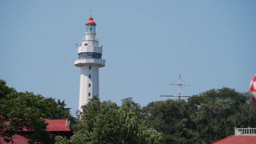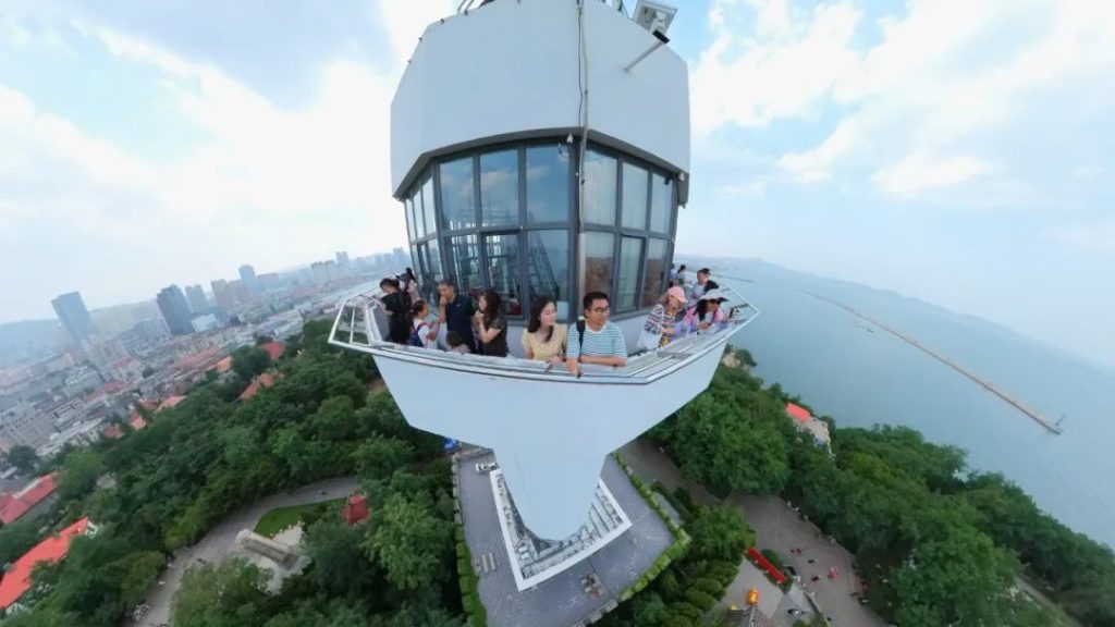 最高處就是煙台的地標——煙台山燈塔,可以花10塊錢乘坐電梯上到燈塔的頂端,眺望煙台城市天際線和海岸線,風景很不錯。