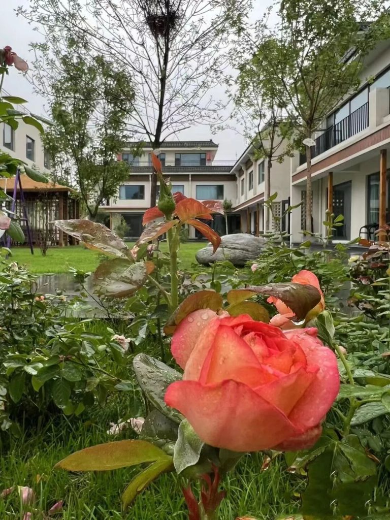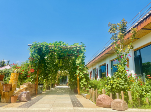 清新的裝修,雅致的庭院,還有停留枝頭不願離去的小鳥整幅場景都表達出這裏的生機與平和。