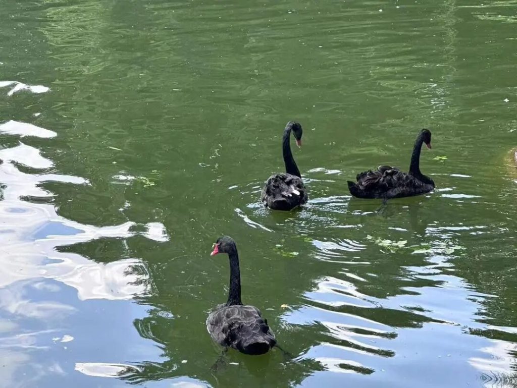 天鵝湖區域分布著喜歡水的各類野生動物:丹頂鶴、火烈鳥、白天鵝、黑天鵝、鵜鶘、鸕鶿。