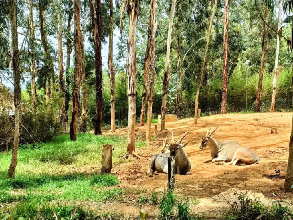 入口處混養散放著長頸鹿、斑馬和鴕鳥。抵達遊覽車下車點後,可以看到白犀牛、大羚羊、角馬、鴕鳥等來自非洲的動物,真的像進入了非洲草原。