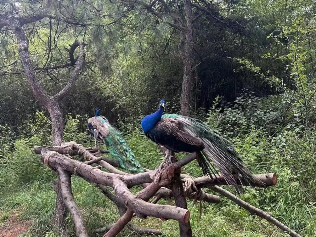 孔雀園裏居住著上千只藍孔雀,都是在路邊散養的,可以拍照和喂食。運氣好會見到孔雀開屏!