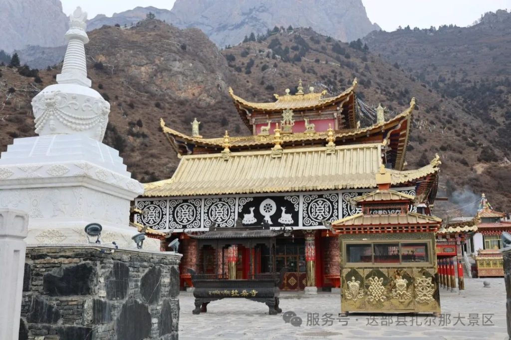 始建於清朝順治二年(公元1645年),是扎尕那的宗教中心。寺院建築風格獨特,佛殿莊重肅穆,內部供奉著眾多佛像,寺內珍藏著許多珍貴的佛教文物和經卷。