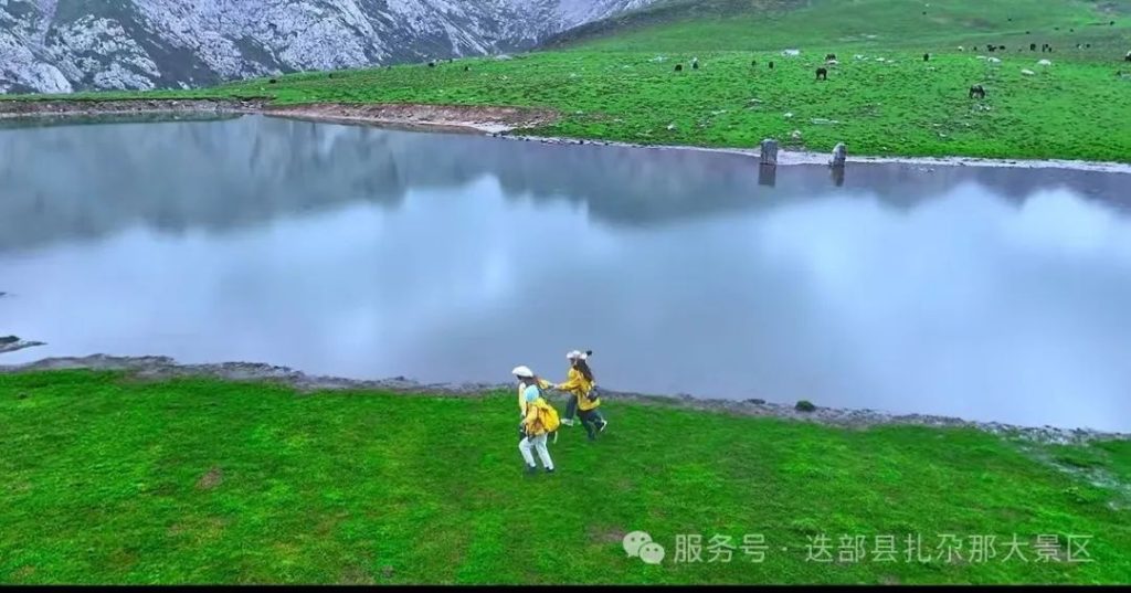 是扎尕那國家地質公園的精髓所在,湖水清澈寧靜,周圍是廣袤的草原和雄偉的山峰,風景如畫,被譽為“聚財湖”祈願財運亨通,好運連連。