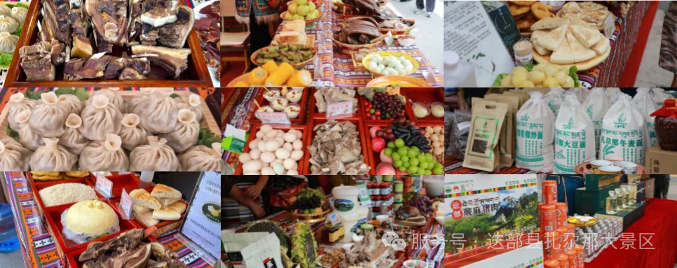 藏式美食:有糌粑、酥油茶、青稞酒、犛牛肉、藏包、藏式暖鍋、石板烤肉、青稞餅等,可在當地居民家中或餐館品嘗。