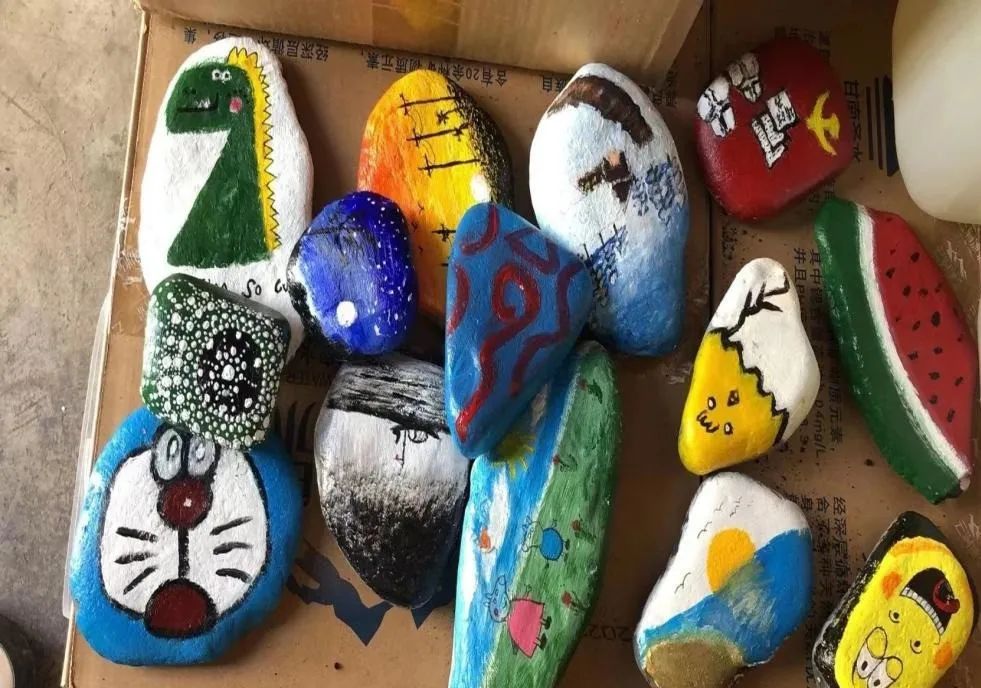 主要是在石頭表面進行繪畫創作。這些石頭來源廣泛,可以是海邊的鵝卵石、河邊的圓潤石子或者山上的石塊。石頭彩繪既可以作為個人的手工愛好,用於裝飾家居,將繪制好的石頭放在書架、窗台,增添生活情趣。