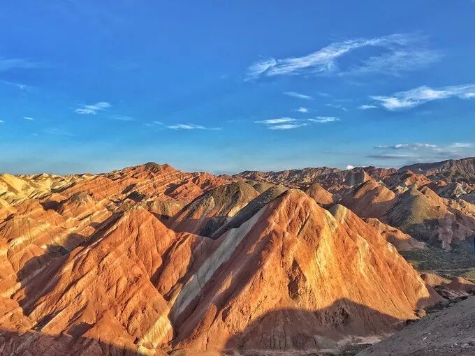 張掖目前有兩個觀賞丹霞的地方,一個是張掖七彩丹霞,以色彩著稱,適合看日落。一個是張掖冰溝丹霞,以形態著稱,適合看日出。兩景區間隔約12公裏。