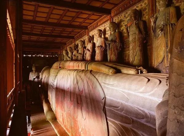 張掖大佛寺是張掖的標志性建築,在鍾樓附近。寺內古建林立,古樹參天,碧草成蔭,環境優美。寺內有一尊國內最大的室內臥佛,釋迦摩尼的涅槃塑像,佛身長34.5m,肩寬7.5m,耳朵約4米,光是一根中指上就能平躺一人。可見塑像何等的龐大了。大佛寺與張掖另一古跡山西會館相通。
