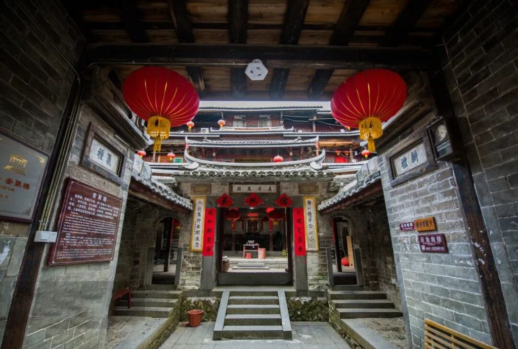 ②懷遠樓:之所以叫懷遠樓,一是懷念遠方的親人,二是表明樓主人來自河南“懷”地的遠方,三是訓示簡氏子弟要胸懷遠大志向。懷遠樓是目前工藝最精美、保護最好的雙圓形土樓。最引人注目之處,在於內院核心位置的祖堂——家族子弟讀書的地方“斯是室”。