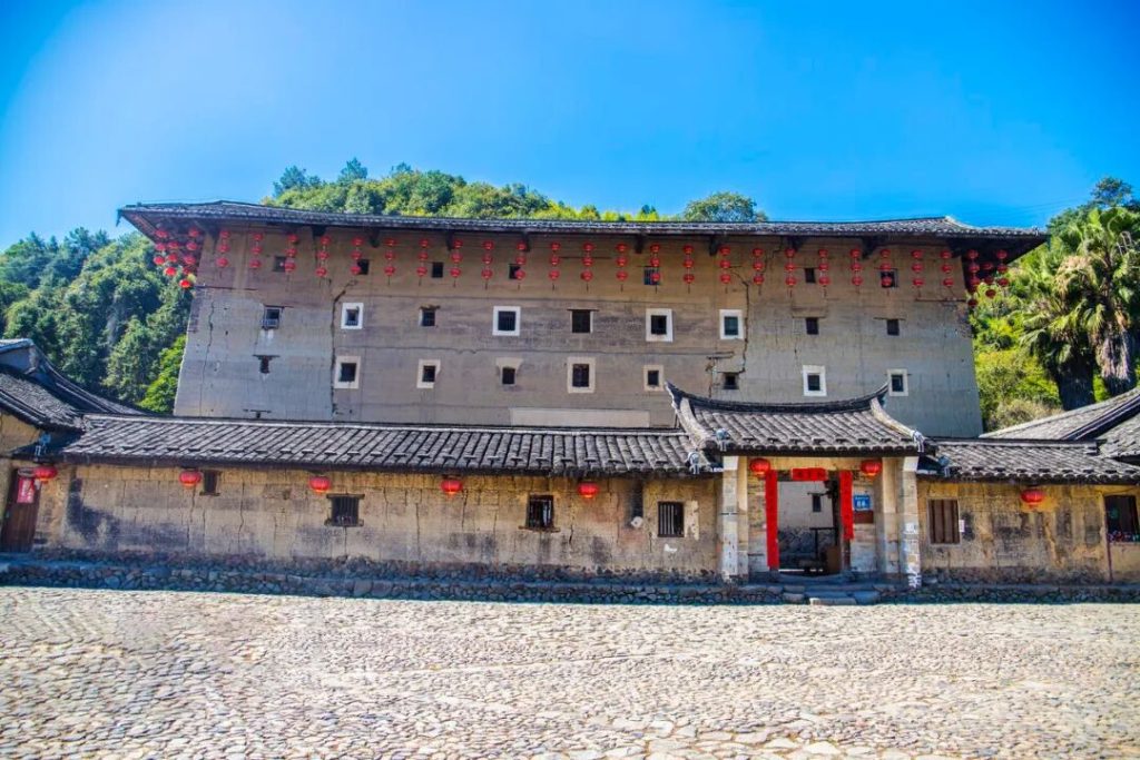 ①集慶樓:永定現存圓樓中年代最久遠、樓梯最多、結構最特殊的一座。建於明永樂17年(1419年),距今已有600年的曆史,其結構十分獨特,樓裏有72部樓梯,一戶一梯,非常合理,令人稱奇。電視劇《下南洋》便在此取景。