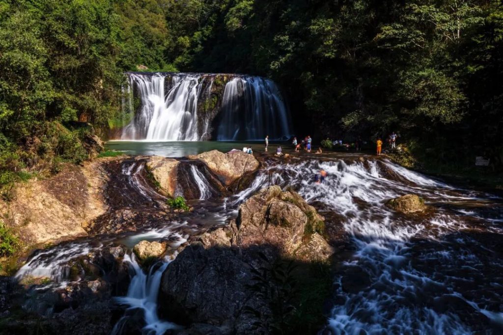 樹海瀑布:號稱“華東黃果樹”,勝在人少。這個不算大的景點還沒有全面開發,碎碎的石子路邊是隨手可摘的草本植物,空氣中夾雜著瀑布飄來的水氣,讓人神清氣爽。