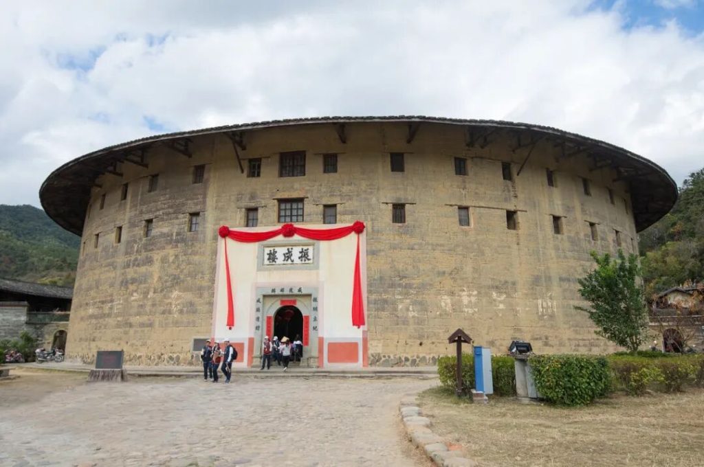 ①振福樓:一座富麗堂皇的圓樓,按八卦布局設計,也是一座外土內洋、中西合壁的土樓,被稱為振成樓的“姐妹樓”。在大門對岸的村道上回望振福樓,其正好位於峽穀兩側的山巒之間,起到兩山之間“過渡”的作用。一幅秀美幽靜的山水田園畫卷。