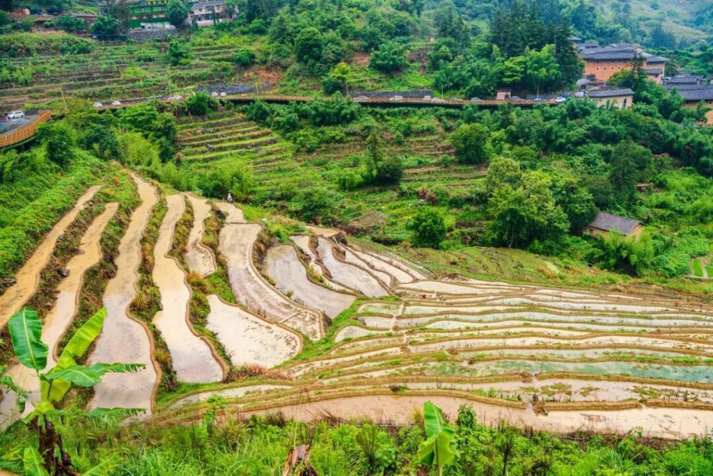 ①河坑土樓群:坐落在獅子山前,由15座不同造型的土樓組成。村對面的獅子山觀景台是俯瞰這片土樓群的最佳地點,在這你不僅能看到藏在其中的“北鬥七星”,還能看見村子裏的兩條溪流在左邊山腳下交彙,形成了河坑村的風水結晶“丁”字水。