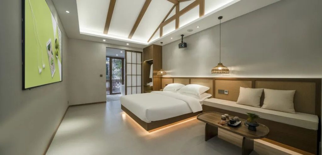 房間內均設有溫泉池、智能管家、巨幕投影