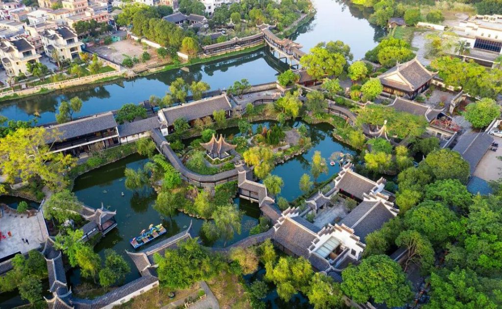 走進詹園,仿佛穿越時空,回到了古代文人墨客筆下的山水畫卷之中。這裏巧妙地融合了江南園林的細膩婉約與嶺南建築的大氣通透,形成了獨特的風格。