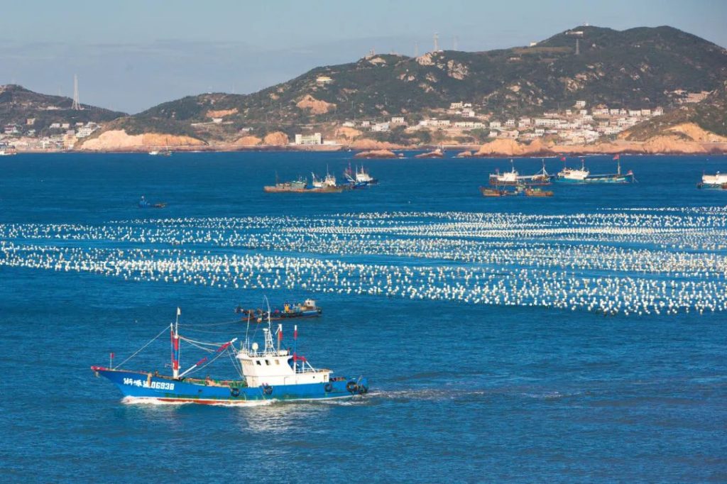 在攝影師眼裏,枸杞島就是天堂,這裏海水清澈,藍天碧波,水天相連。白色的浮子在陽光照耀下閃爍著點點銀光,漁船在碧波蕩漾中穿梭。