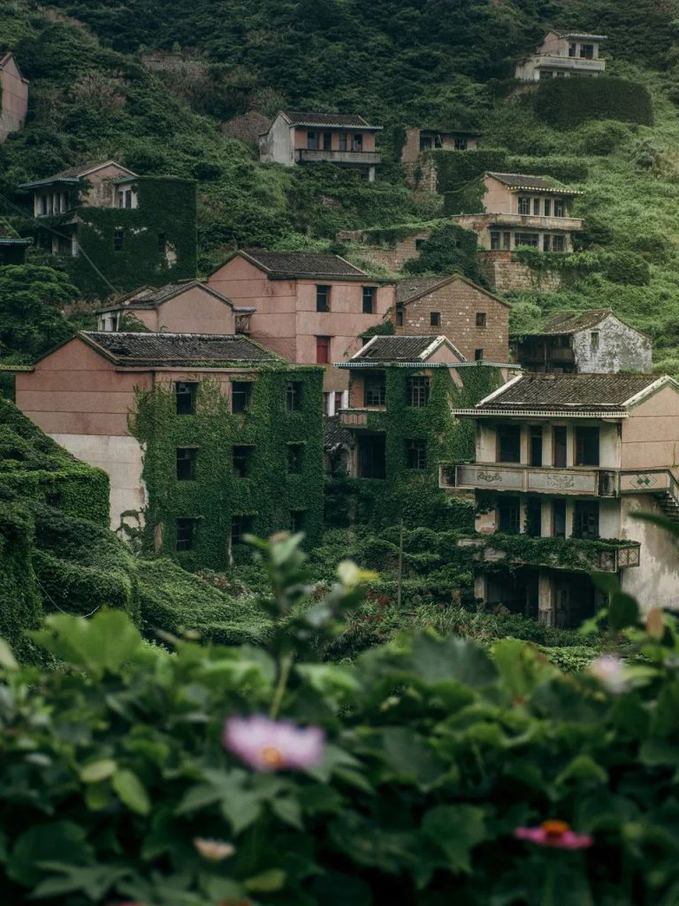 枸杞島,還有一個叫後頭灣的地方。那裏的嫋嫋炊煙不再升起,上百幢的民宅已人去樓空。這裏成了“綠野仙蹤”,藤蔓纏繞著房屋,它們面朝大海,時間仿佛靜止了一般。