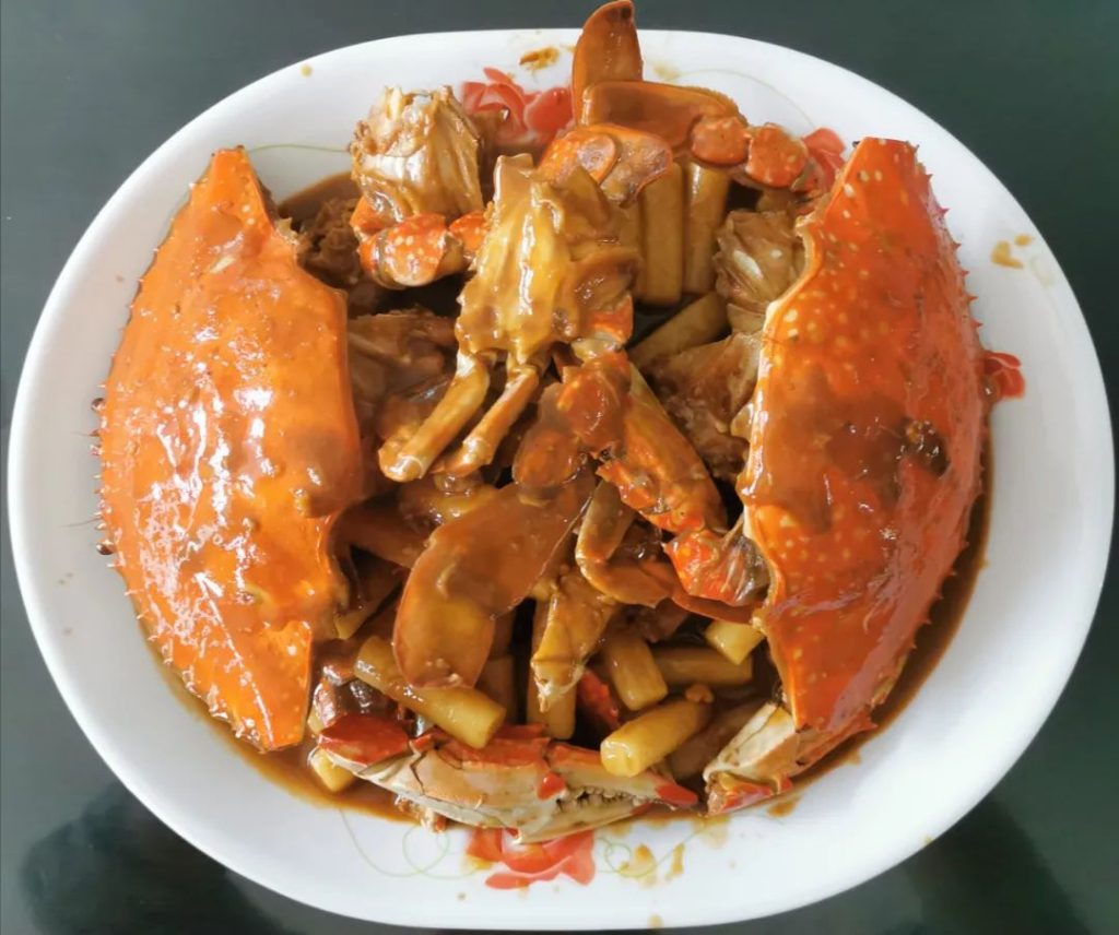 一道梭子蟹炒年糕,咬一口年糕,外甜裏嫩,醬料甜甜的,而且甜而不膩。
