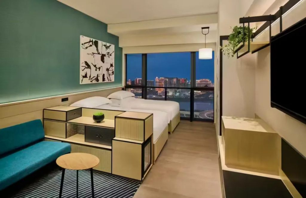 距橫琴口岸300米,步行1-2分鍾可達。房間有270度全景落地窗,可覽澳門及橫琴景觀,設計融合多元藝術文化。